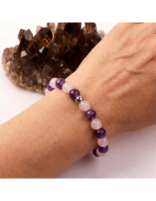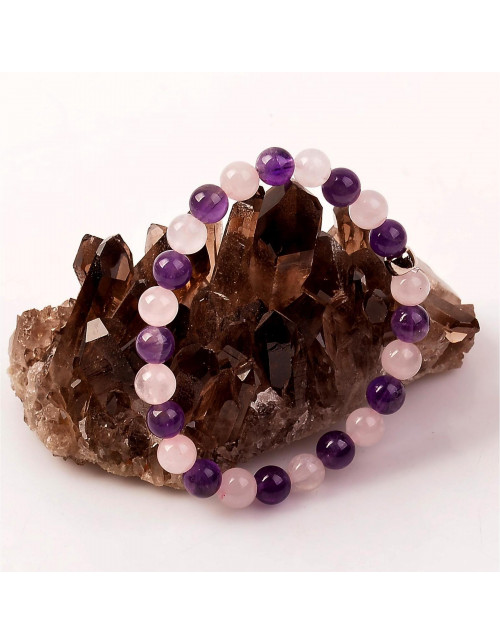 Ametist - Pembe Kuvars Taşı Bileklik - 8 mm