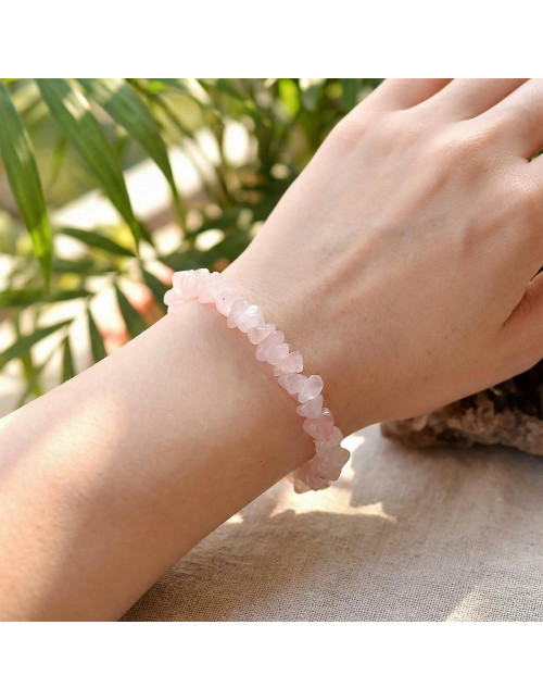 Pembe Kuvars Taşı Bileklik – Ayarlamalı, dengeli dizilimiyle hem estetik hem konforlu bir kullanım sunar. İnce ve düzenli sıralanan pembe kuvars taşı, bilekte temiz ve rafine bir görünüm oluşturur.